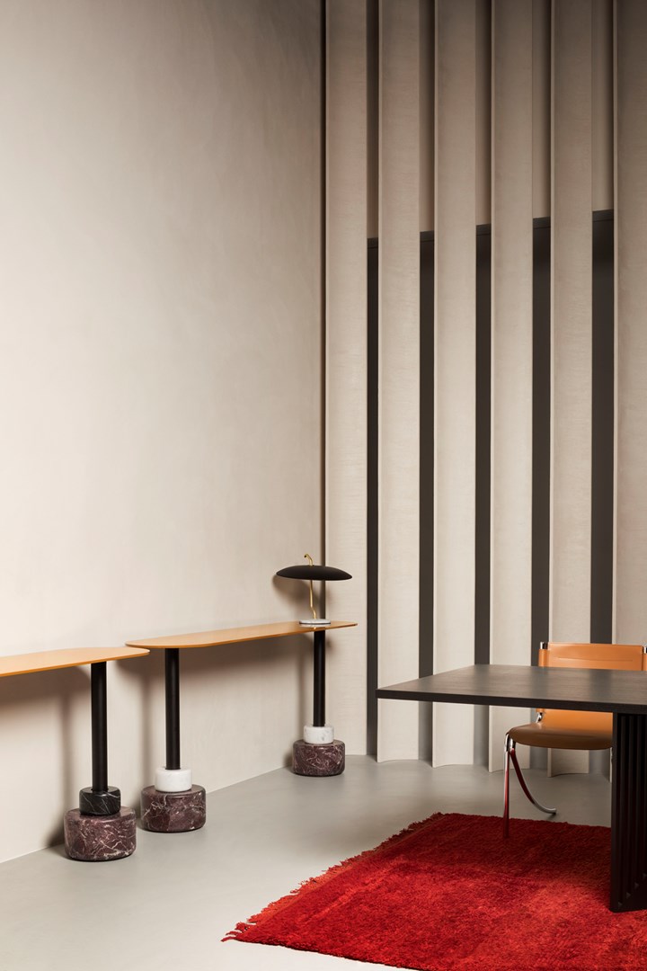 Внизу культовый буфет Sheraton, победитель конкурса Compasso d'Oro в 1979 году, ставший авангардным уже на своем дебюте, предлагается в новом тёмно-зелёном лакированном варианте. Наконец, оживлённый комод Storet от Nanda Vigo с его мягкими изгибами и глянцевыми лакированными фасадами создаёт извилистую игру света и тьмы, которая подчёркивает его красоту, делая его игривым и сквозным элементом в различных частях дома.